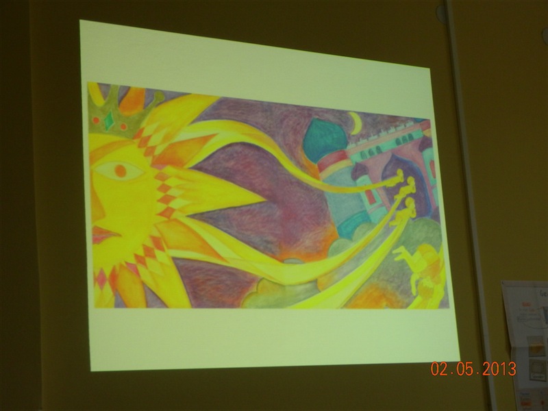 ![]() | Lesung von Andrée Star03/05/2013Die Illustratorin Andrée Star hat gestern für zwei Klassen der Deich-Schule aus dem mehrsprachigen Buch "O raio de sol e o fio de lua" (Der Sonnenstrahl und der Mondstrahl) vorgelesen. Das Buch entstand aus einer Zusammenarbeit zwischen der Illustratorin und der Kinderbuch-Autorin Margarida Cachada. Vorgelesen wurde auf luxemburgisch; mit Unterstützung der Schüler wurden aber auch Passagen auf anderen Sprachen gemeinsam gelesen, so z.B. auf portugiesisch. |