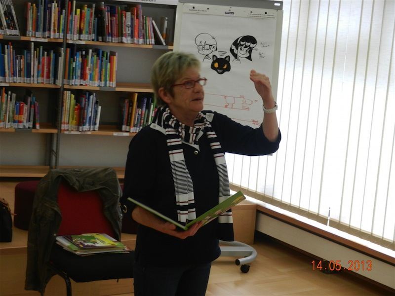 ![]() | Lesung mit Christiane Ehlinger14/05/2013Die luxemburgische Schriftstellerin Christiane Ehlinger hat heute in der Düdelinger Regionalbibliothek zwei Klassen der Gaffelt Schule (Zyklus 4) einige ihrer Bücher vorgestellt, darunter unter anderem Bücher mit Gedichten (z.B. Schwätz kee Blech) und ein Kinder-Sachbuch zum Thema Sexualität (D'Lynn an de Charel. Wou komme mer hier a wou gi mer hin?). |